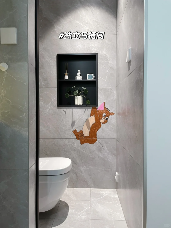 在沐浴区我还额外增加了一个蹲便,不单单可以让沐浴区变成客厕,同时也能方便使用,家中有两个双厕所,不会出现互相争吵厕所的场景。