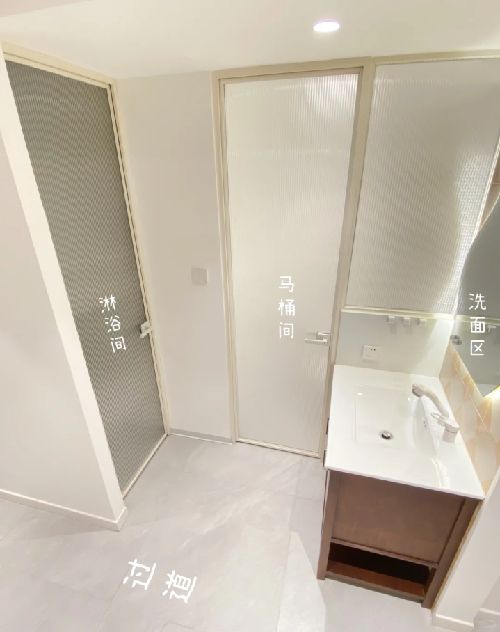 简单来讲就是在沐浴区与其他的功能区加一个玻璃隔断,防止水气蔓延到整个卫生间之间,让卫生间避免太过潮湿而滋生异味和细菌。
